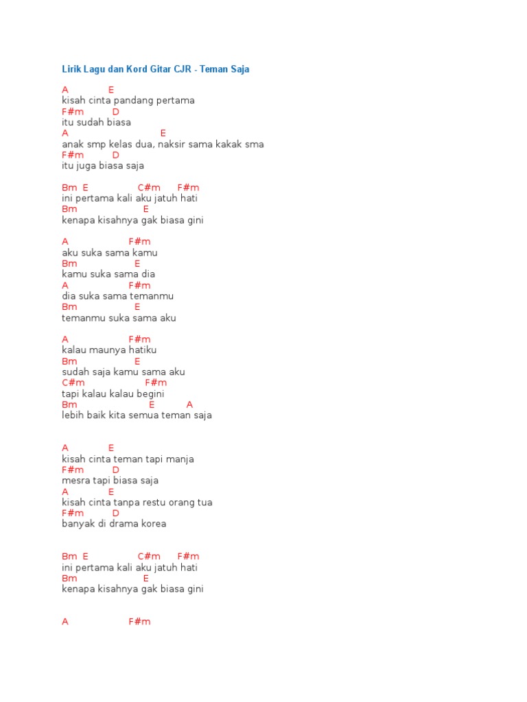 B E cukuplah saja berteman denganku Fm janganlah kau meminta lebih B ku tak mungkin mencintaimu E kita berteman saja teman tapi mesra B E aku memang suka pada dirimu Fm namun aku ada yg punya B lebih baik kita berteman A kita berteman. Reff Musik. Last updated on 08152011.