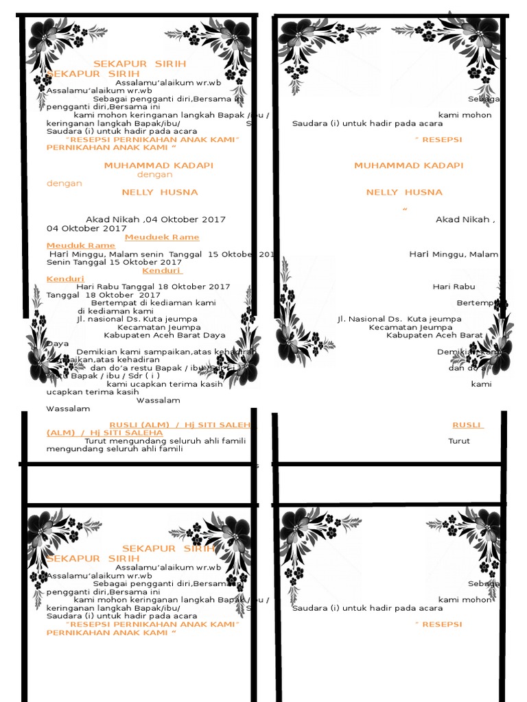 Sekapur sirih pernikahan. Maka hendaklah dia bertakwa kepada Alloh dalam separuh yang tersisaHRBaihaqi Dasar Pemikiran. Event Planner in Palembang. Kesenian semacam ini biasanya tak hanya ada dalam pesta pernikahan saja namun kerap juga ditampilkan dalam menyambut kedatangan para pejabat atau tamu negara pelepasan siswa-siswi pada lembaga pendidikanUpacara mapag panganten kaya dengan berbagai atraksi seni.